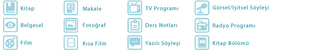 Kütüphanemizde; kitap, televizyon programı, radyo programı, film, ders notları, makale, kısa film, belgesel, kitap bölümü, yazılı söyleşi, görsel/işitsel söyleşi, fotoğraf başlıklarında bir çok belge bulabilirsiniz.